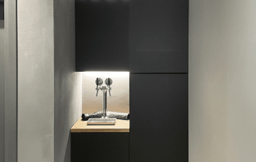 Il progetto prevede la creazione di uno studio di personal trainer che unisce professionalità, pulizia e un servizio completo, seguendo il cliente in alimentazione, formazione ed educazione fisica. Abbiamo scelto finiture e materiali di alta qualità per trasmettere questi valori aziendali, combinando il calore del legno con la modernità del vetro e dell’acciaio. Un design curato e materiali facili da pulire garantiscono un ambiente professionale, igienico e accogliente.